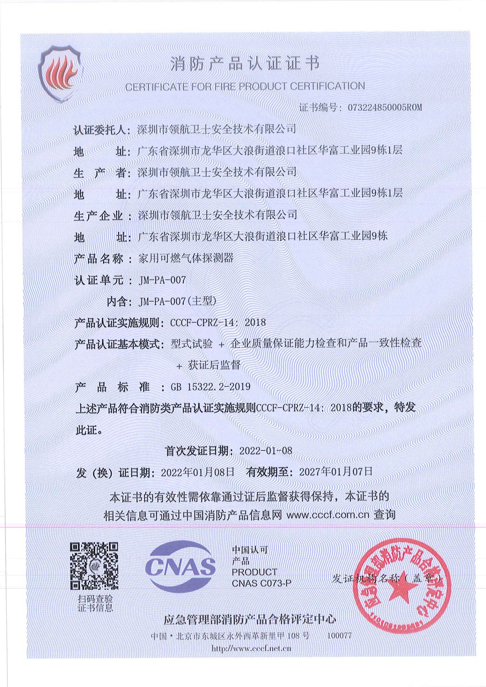 一氧化碳消防認(rèn)證