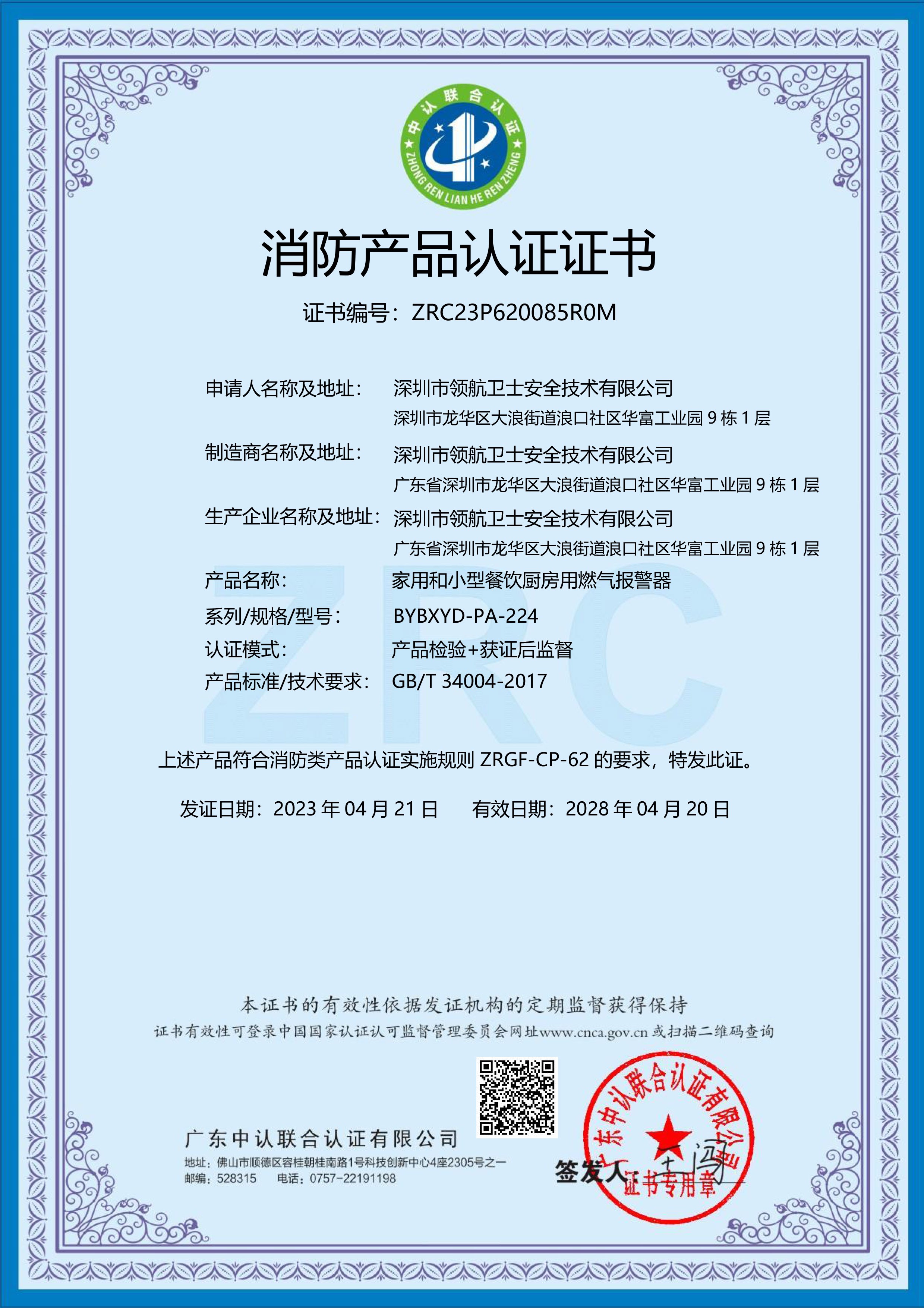 消防認(rèn)證證書