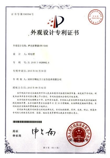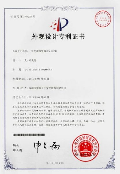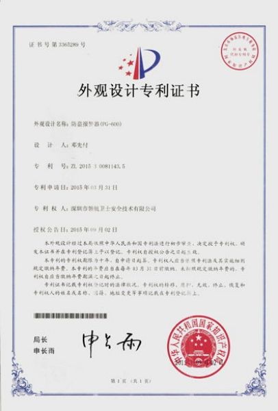 外觀設(shè)計(jì)專利證書