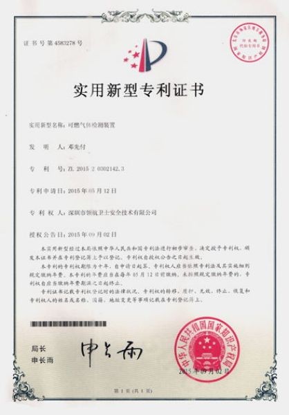 實(shí)用新型專利證書