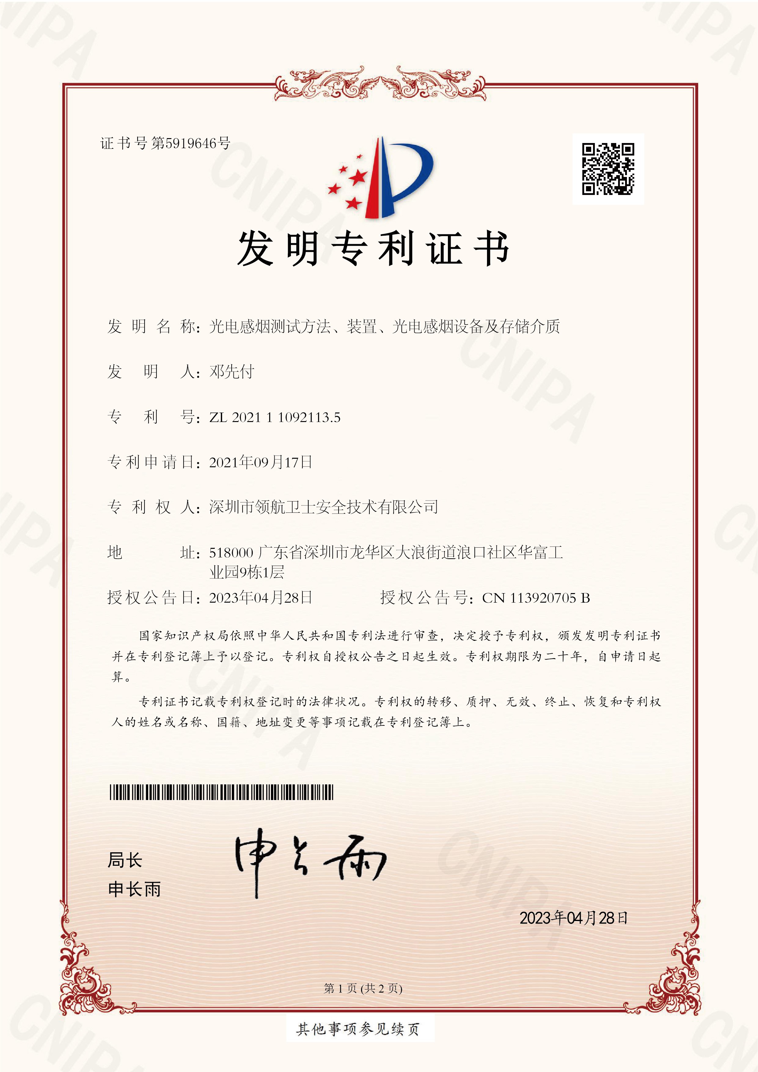 發(fā)明專利證書