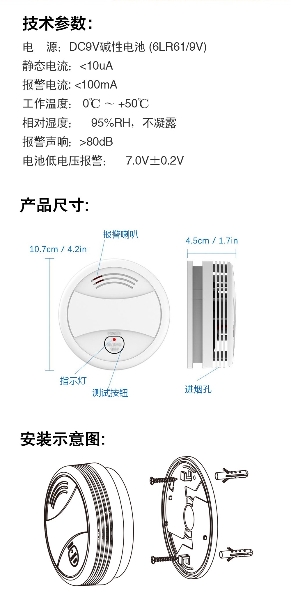 消防認(rèn)證煙霧報(bào)警器 (型號(hào)PA-443EN)
