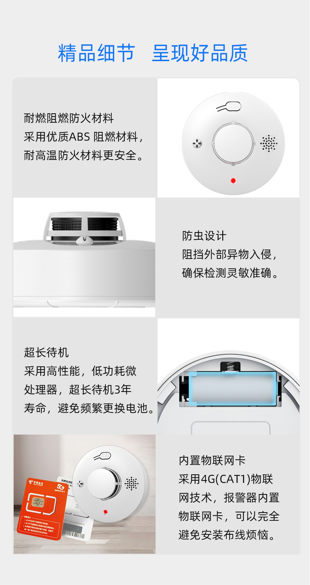 全網(wǎng)通4G煙霧報(bào)警器穩(wěn)定性好,信號(hào)強(qiáng)穩(wěn)定,靈敏度高。