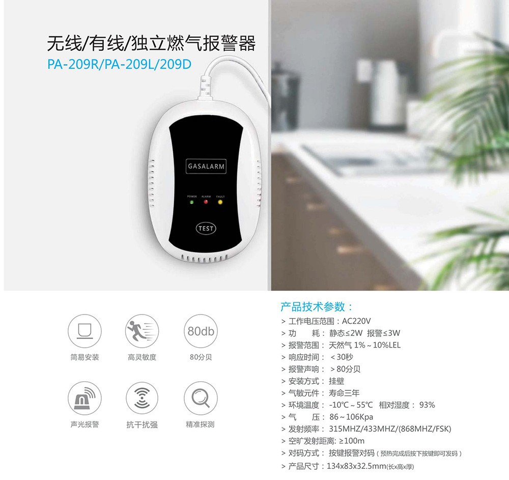 家用無(wú)線燃?xì)鈭?bào)警器 (型號(hào)PA-209)