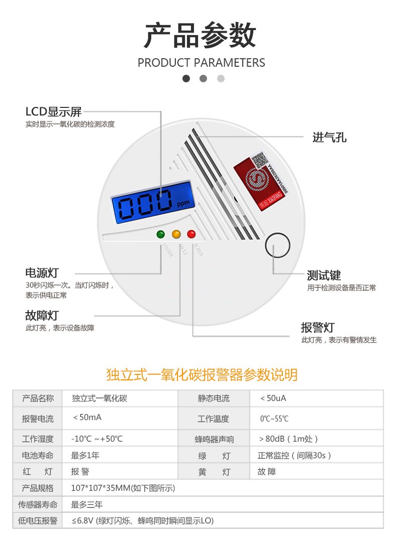 傳感器:采用創(chuàng)新進(jìn)口電化學(xué)一氧化碳傳感器。