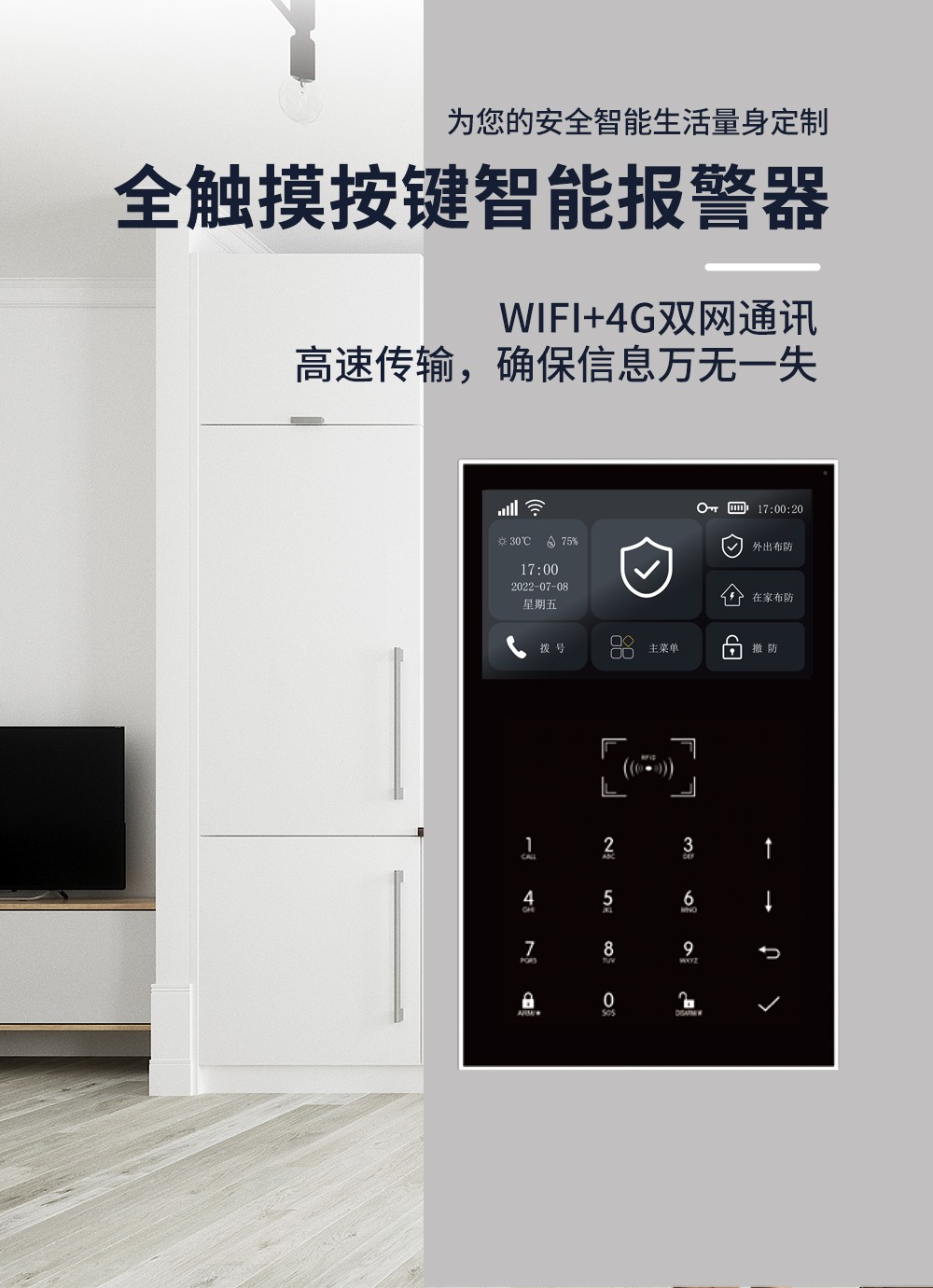 雙網(wǎng)模式WIFI+GSM/4G,支持app推送、短信推送和語音監(jiān)聽等多通道報(bào)警方式;