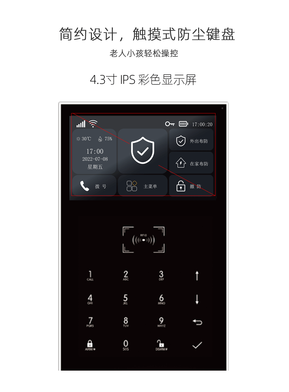 4.3寸IPS彩色全電容觸摸按鍵,簡約風(fēng)格,手感佳;