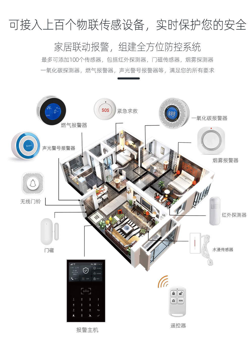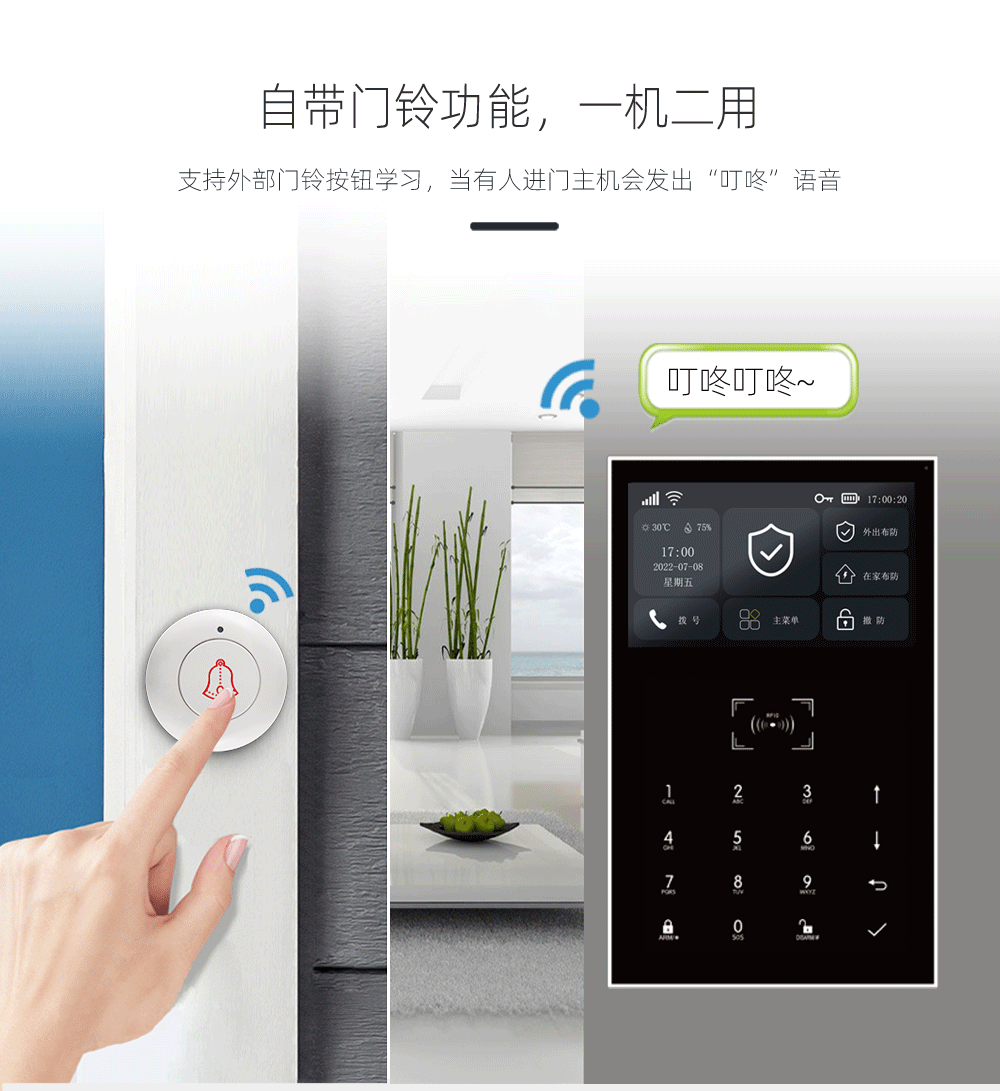 內(nèi)置無線發(fā)射功能可配置無線警號(hào)和控制智能家電;