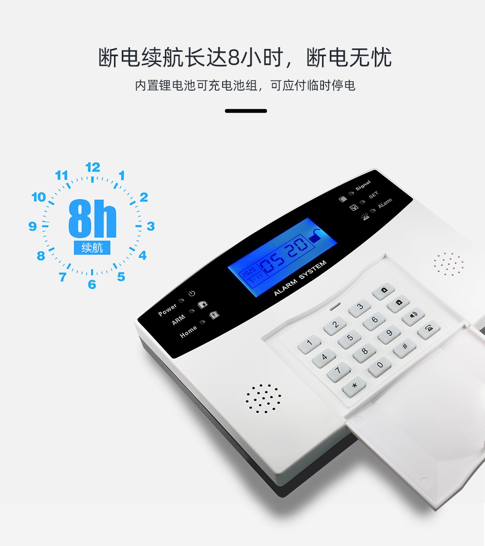 預(yù)設(shè)6組報(bào)警電話,主機(jī)自動(dòng)撥打電話語音報(bào)警;