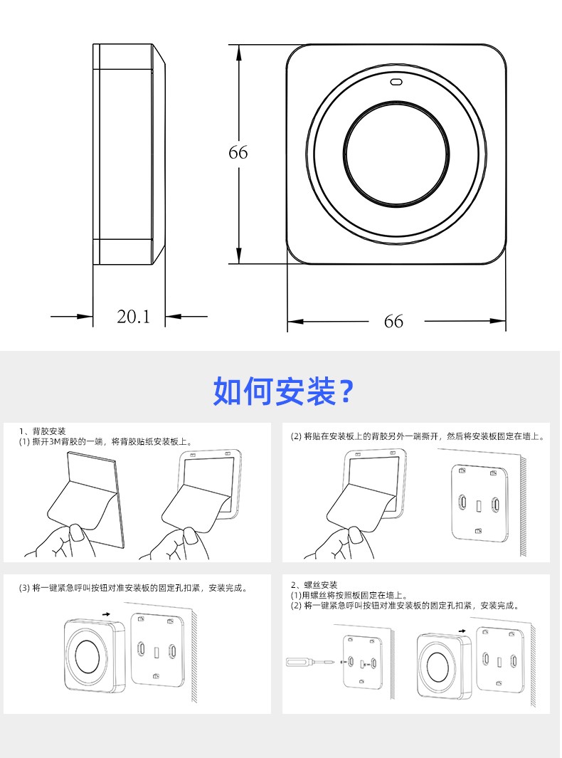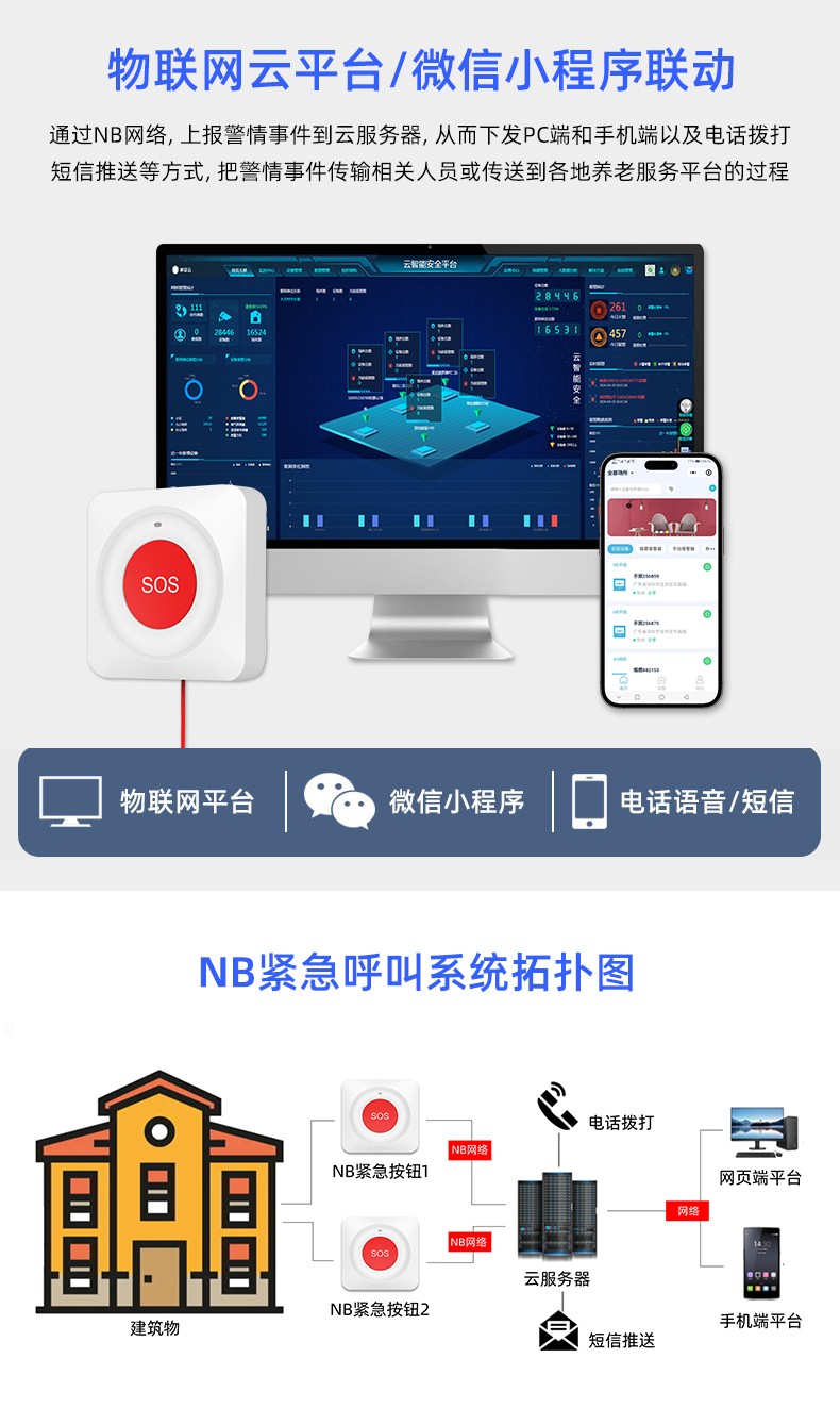 NB-lOT 一鍵緊急呼叫按鈕關(guān)愛家人安全,一鍵呼叫傳達(dá),安裝便捷,遠(yuǎn)程報(bào)警,多方式推送告警.