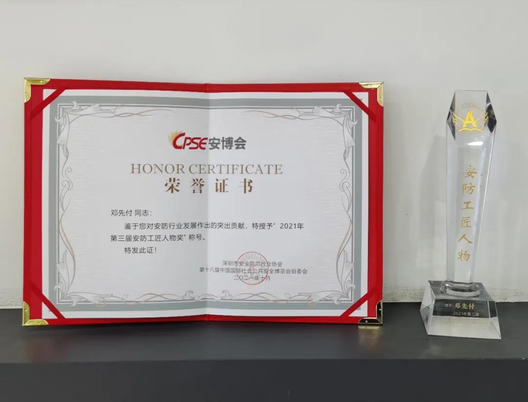 此前,受國內(nèi)疫情影響,全球安防行業(yè)盛會——2021年第十八屆中國國際社會公共安全博覽會(以下簡稱安博會)延期舉行。幾經(jīng)波折,第十八屆安博會于12月26日在深圳會展中心拉開帷幕。伴隨著安博會的召開,CPSE安博會組委會聯(lián)袂國家安全防范報警系統(tǒng)產(chǎn)品質(zhì)量監(jiān)督檢驗中心(北京)、深圳市安全防范行業(yè)協(xié)會,旨在探討安防行業(yè)在AI、云計算、5G、生物識別等新技術(shù)運用,后疫情時代下的機遇與挑戰(zhàn),同時表彰一批為安防行業(yè)做出突出貢獻(xiàn)的個人和企業(yè)的第五屆中國安防系統(tǒng)集成商高峰會暨安防工匠人物、智慧安防優(yōu)秀解決方案商、中國安防創(chuàng)新力企業(yè)頒獎典禮,在會展中心六樓桂花廳隆重舉行,公司董事長鄧總受邀出席并榮膺“安防工匠人物”獎。